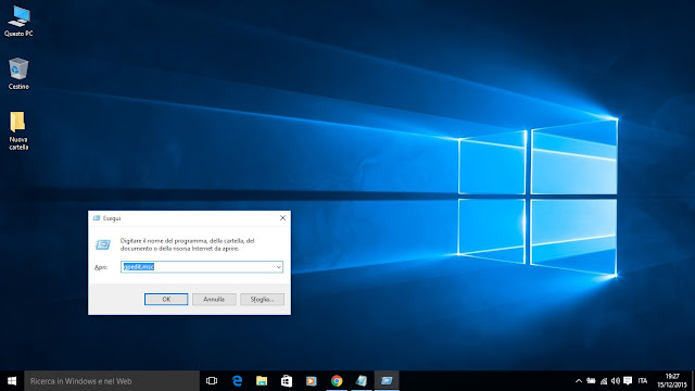 - Nella barra di ricerca di Windows 10 scriviamo “esegui” e diamo invio, ora scriviamo “gpedit.msc” e clicchiamo su OK. Questo comando aprirà l’Editor di Criteri di Gruppo.